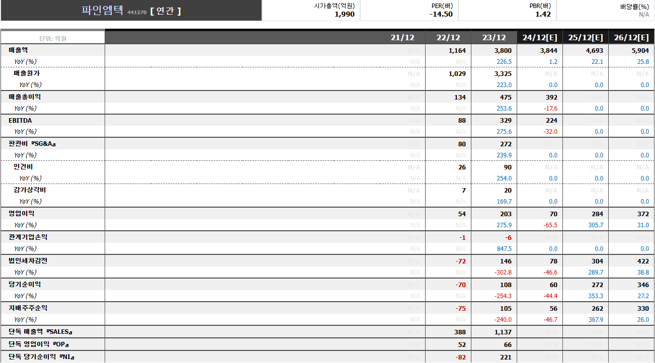 23년 실적 : 3,800억 / 203억