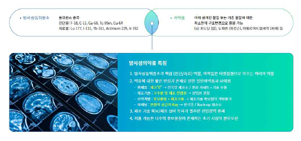 방사성동위원소(Radioisotope)와 의약품(Carrier)을 결합하여 제조된 특수의약품으로서 질병의 진단 및