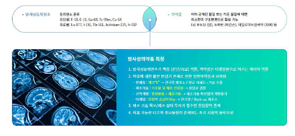 방사성동위원소(Radioisotope)와 의약품(Carrier)을 결합하여 제조된 특수의약품으로서 질병의 진단 및