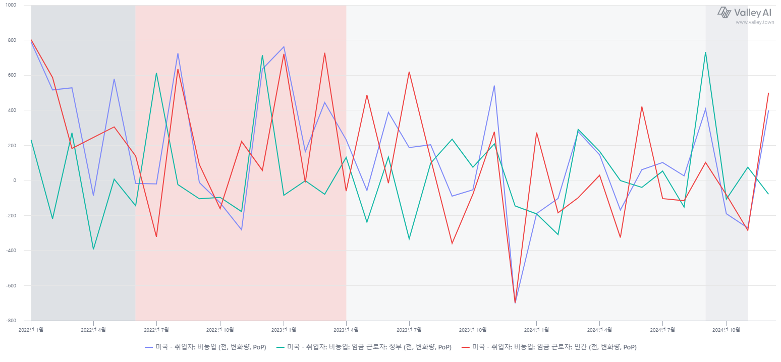 2024년 12월 기준 비농업 고용은 여전히 미국 내에서 견고하게 나와주고 있다.