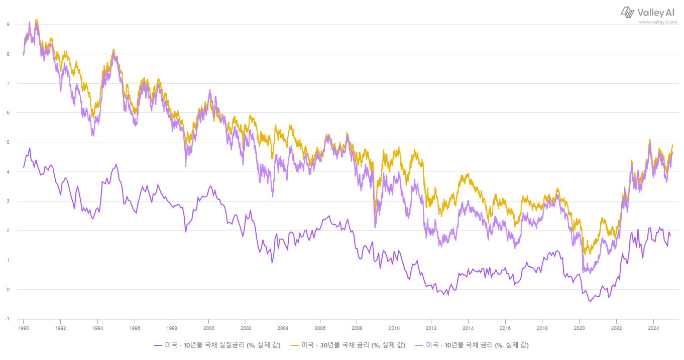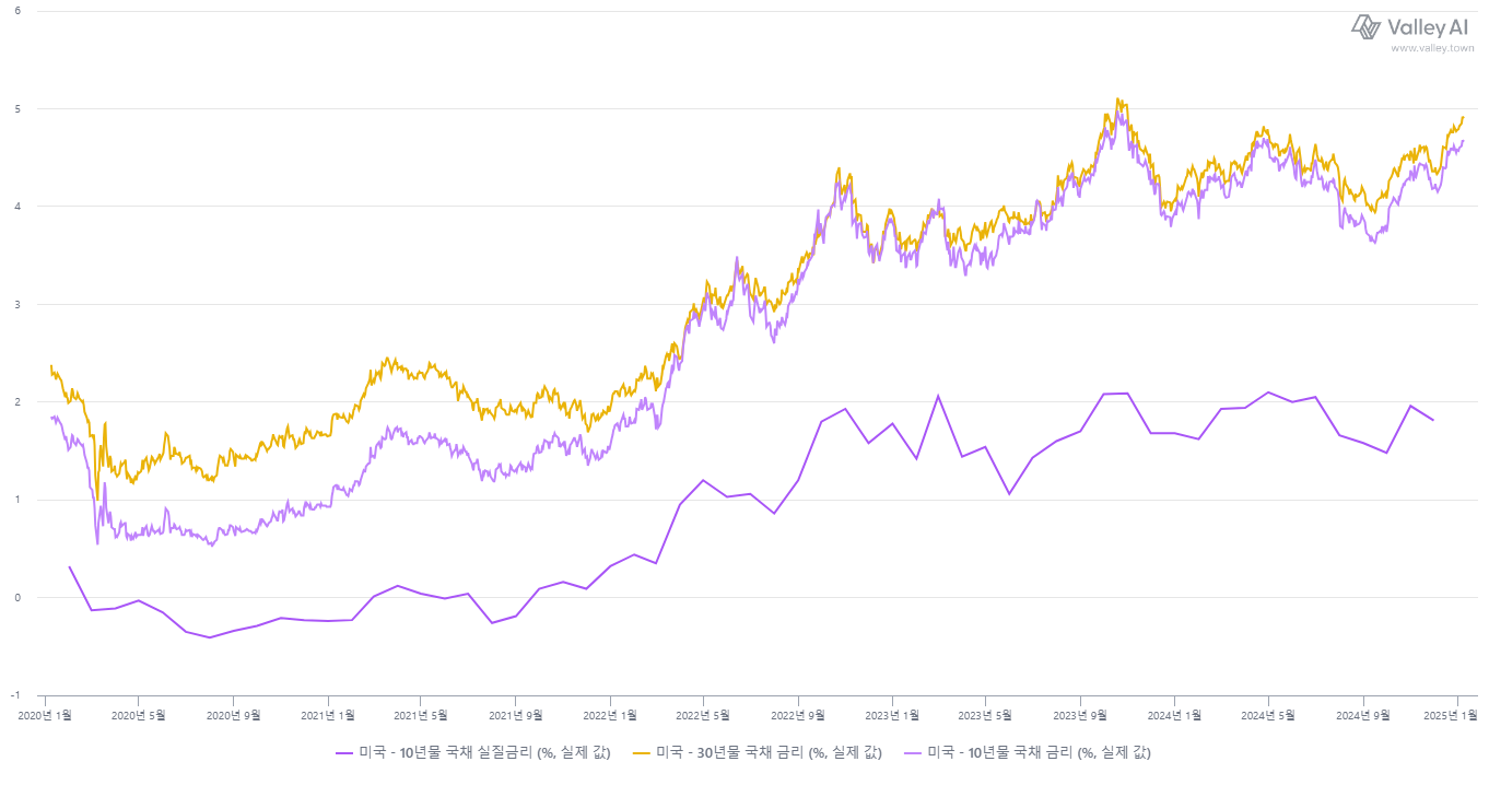 보이듯이 미국 10년채, 30년채 국채 금리는 현재 5% 가까이 도달한 상태이다.