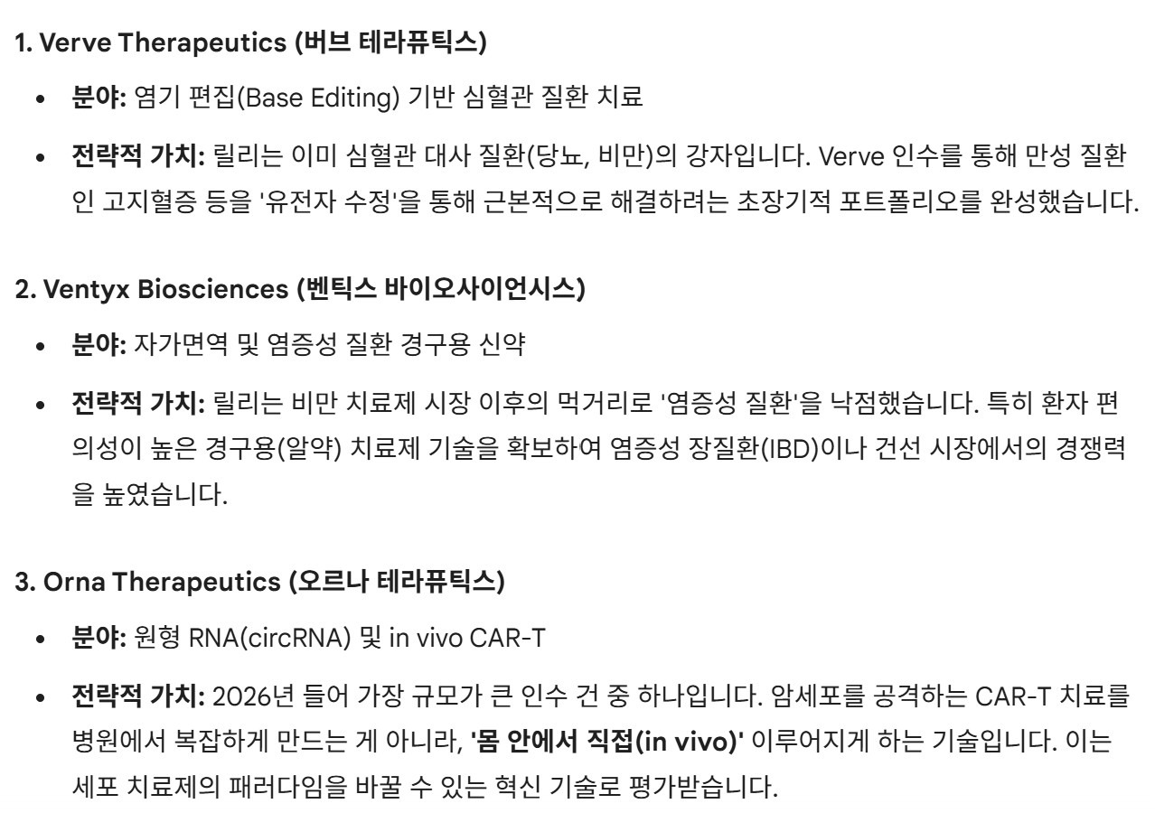 셋째, 릴리는 Orforglipron(오포글리프론), Retatrutide(레타트루타이드), 적응증 확대, 그리고 비만 외 M&A까지 이어지는 방식으로 “단일 블록버스터 의존 기업”이 아니라 “대사질환 중심 플랫폼 기업”으로 확장.