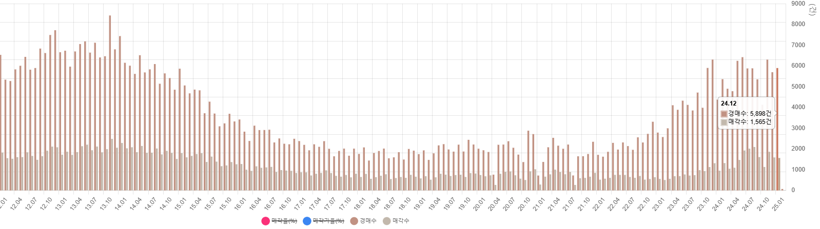 또한 아래의 리치고(https://m.richgo.ai/pc) 경매건수 추이를 보더라도 상승추세로 부동산 하락 초입으로 보는 것이 타당한 듯 보인다.