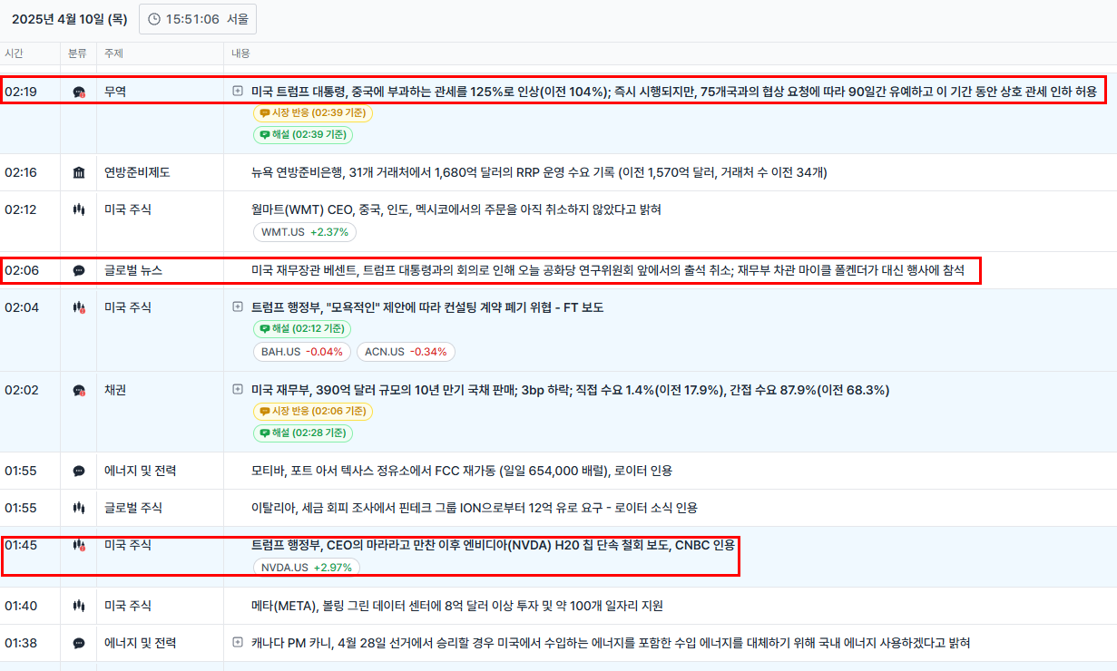 다만, 이정도의 급격한 주가하락까지는 트럼프도 예상하지 못한 듯. 실시간 속보피드를 통하여 파월 금리 하락 압박, 베트남과의 관세 제로화 협상 등 다양한 채널을 통하여 주가 올리기에 다급하게 힘쓰는 트럼프가 느껴졌다.