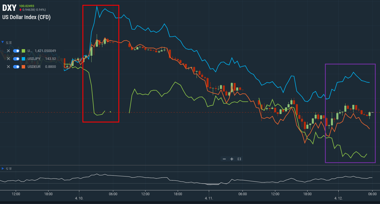 연초부터 하락하던 달라인덱스도 주가폭락과 함께 4.4일 다시 상승(확연한 상승추세가 만들어질지는 미지수)