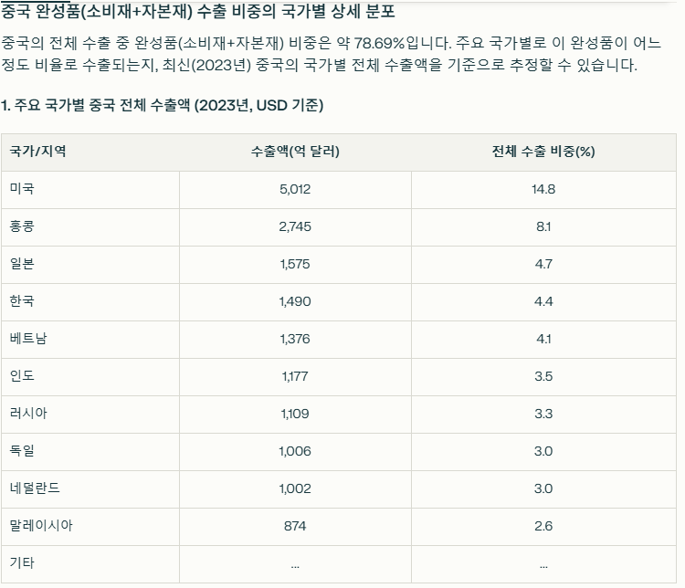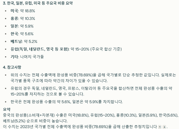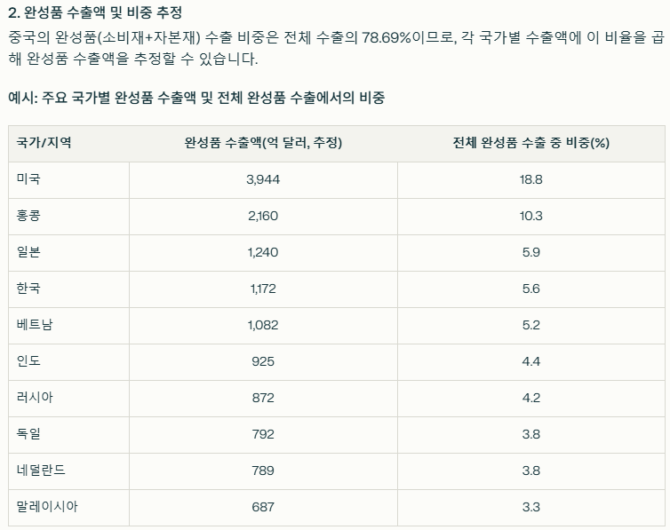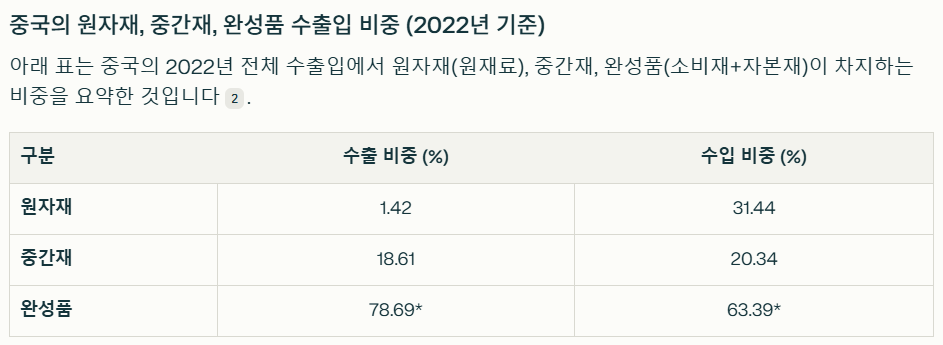 중국의 주요 무역구조는 원자재, 중간재를 수입해서 완성품을 수출하는 것.(완성품 수출 비중 : 약 80%)