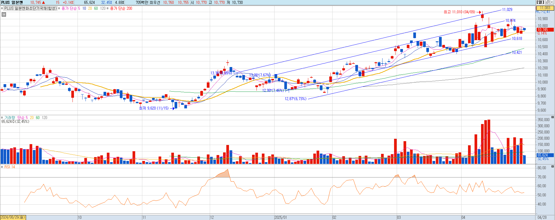 ☞ 결과적으로 하방보다는 상방요인이 더 우세해 보이므로, 헷징으로는 현재 골드보다는 괜찮을 것 같다. 특히 달러기준이 아니라 원화기준으로 본다면, 한국의 금리 인하기조에 펀더멘털은 약해지고 있고, 일본은 금리 인상기조에 개선되고 있는 듯한 움직임이므로 엔화를 직접 담아도 좋고, 절세계좌를 활용해서 아래의 엔화초단기국채를 사는 것도 나쁘지 않다.
