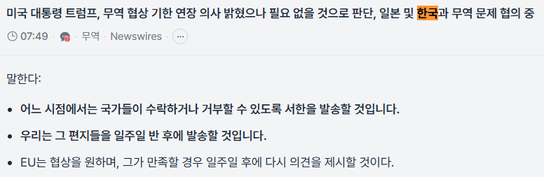 6.12일 일주일 반 뒤(6.21~6.23 추정)에 서한을 보낸다고 합니다.