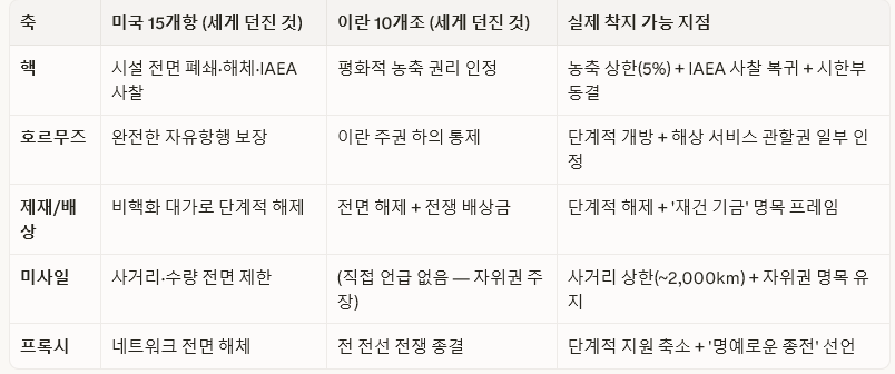 이란은 호르무즈 해협 통제권과 핵물질이라는 두 가지 레드라인을 절대 양보할 수 없다