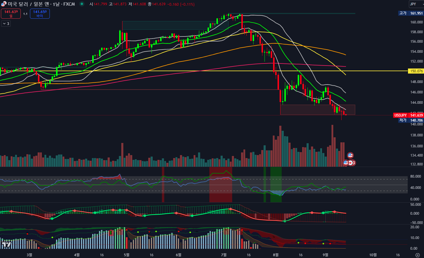 달라-엔이 8/5일 블랙 먼데이 최저점 이하로 내렸다. 하지만 시장은 끄떡없다.