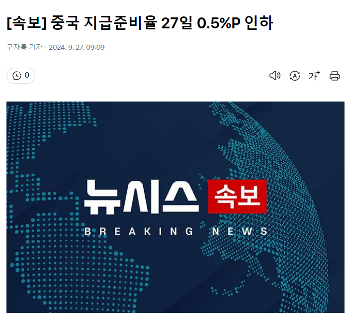 중국 : 지급준비율 0.5% 인하