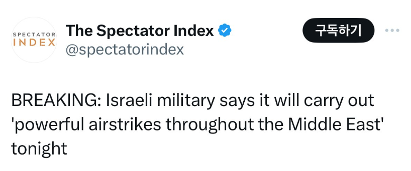 이스라일-이란 전쟁? 이란은 어제 미사일을 발사 한 후 "이스라엘 추가 보복이 없다면 행동을 여기서 끝낸다"라 발표함.