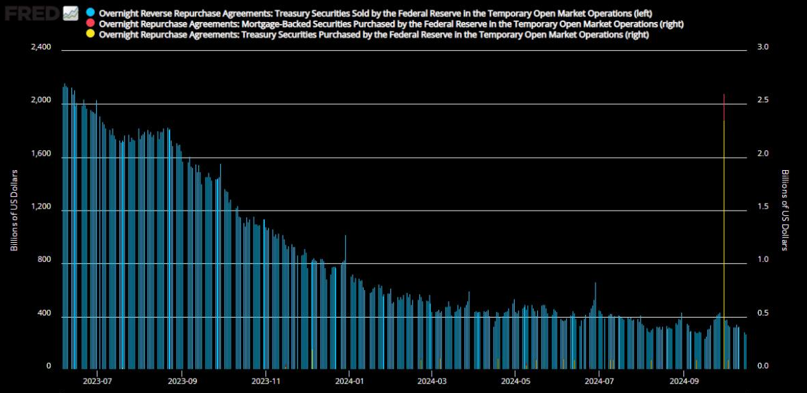 역레포 잔고는 2021년 5월 이후 두 번째로 낮은 수준이라 합니다.