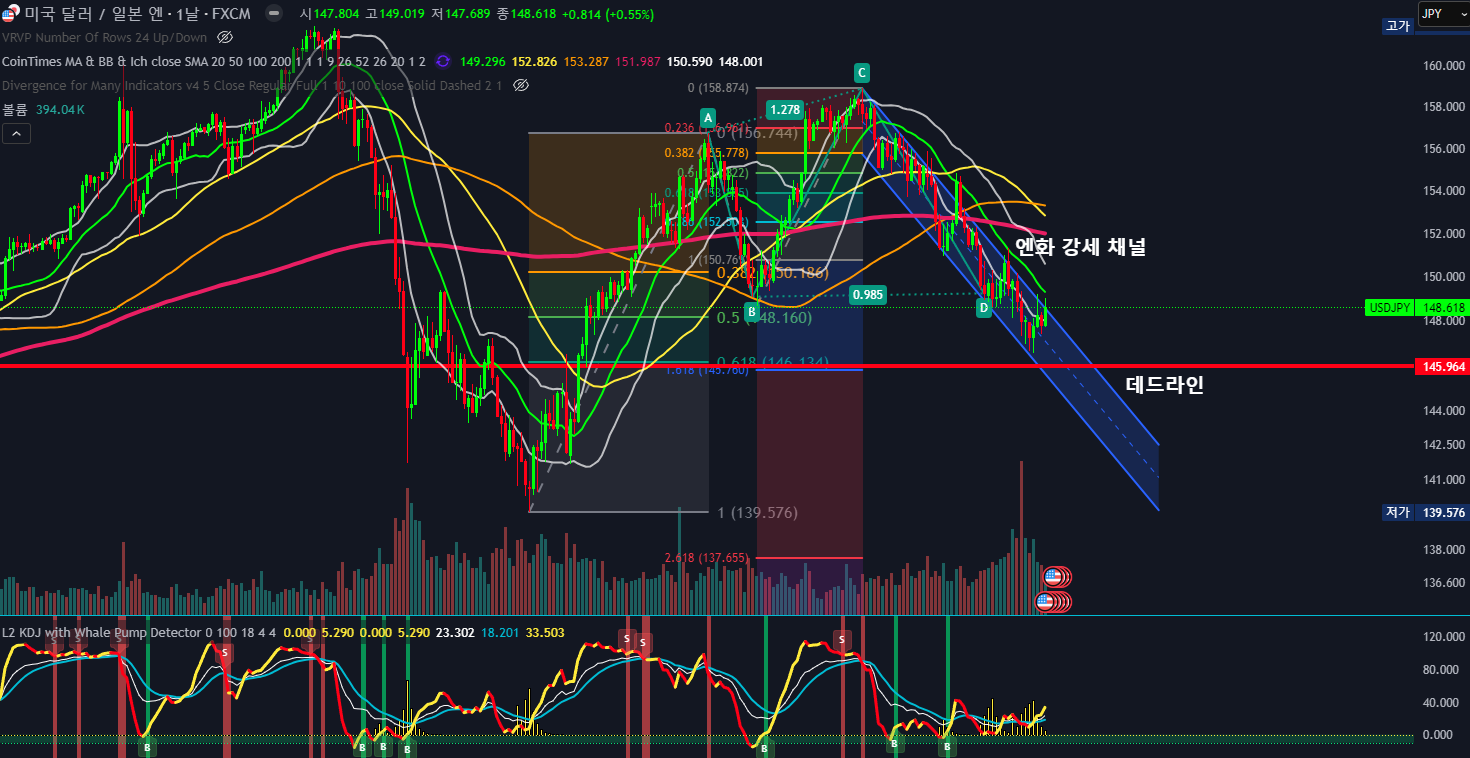 엔화 강세 채널을 타고 계속 내려가는 중입니다.