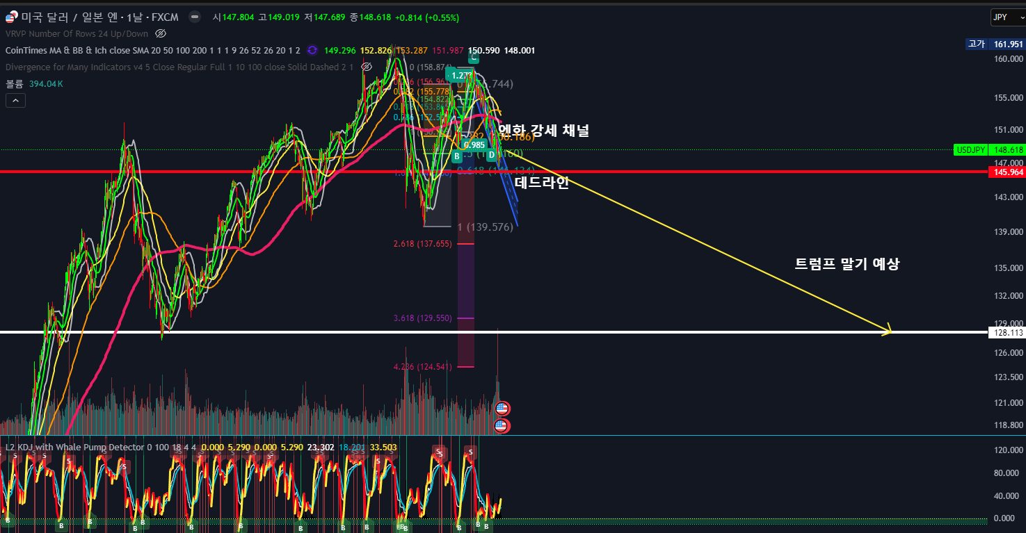하지만 2026년부터 트럼프 의도하에 본격적으로 약달러가 된다면 트럼프 말기에는 130도 열어놔야 할 것 같아요.
