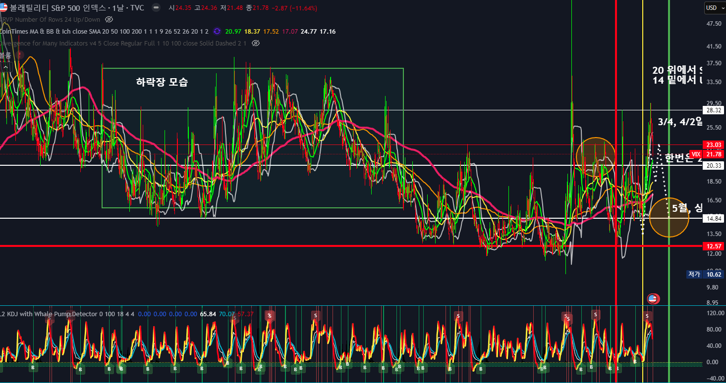 3월말, 4월초 다시 VIX 튈 것으로 예상되며 4월~5월 중순까지가 올해 가장 위험한 시기 아닐까 합니다.