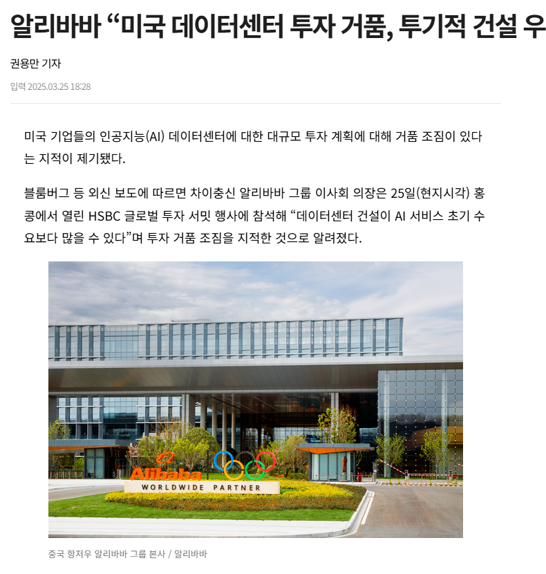 근데, 3월에는 미국의 AI 인프라 투자는 거품이라고 하네요.