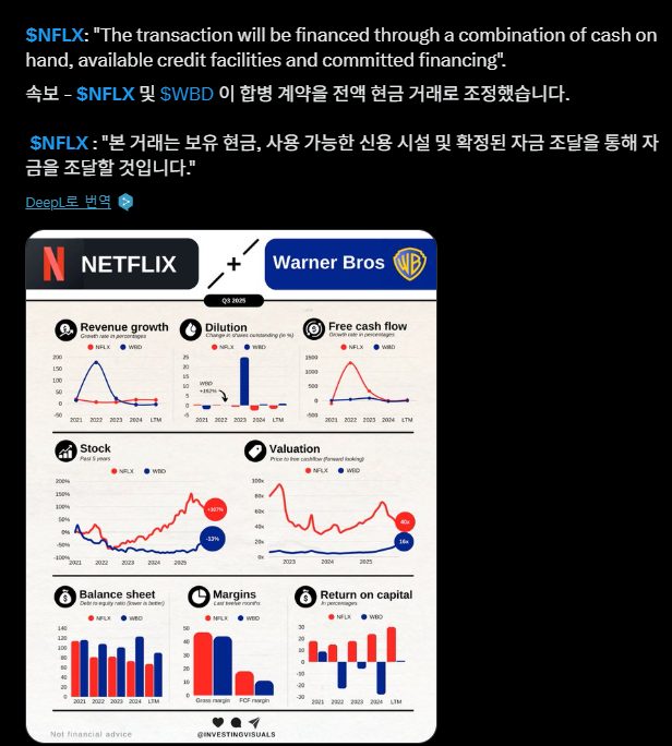 넷플릭스는 워너브라더스 인수 추진으로 더 하락한 측면이 있음. (상당히 비싼 인수 가격)