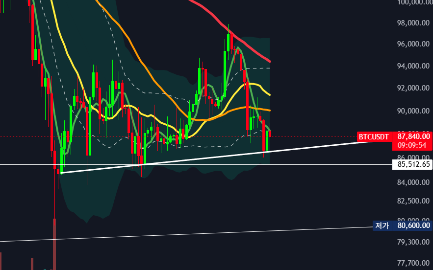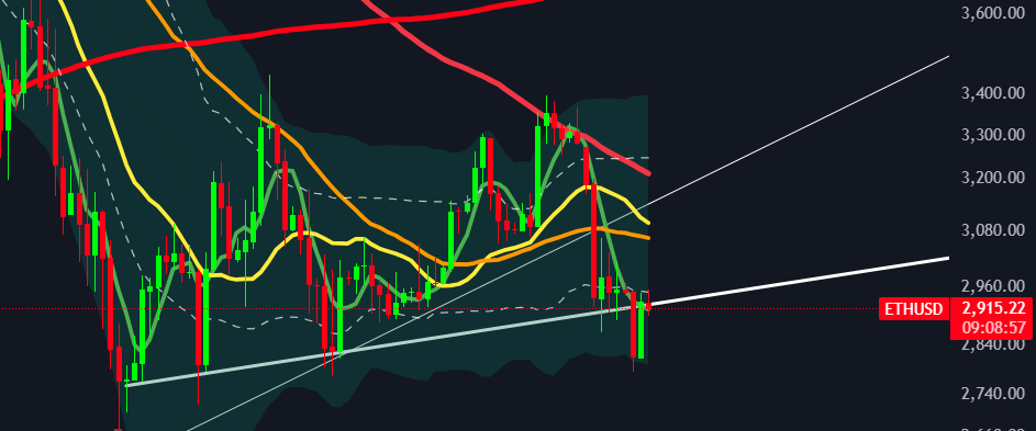 • 이더리움은 빗각 무너지기 일보직전이다. 위험 수위.