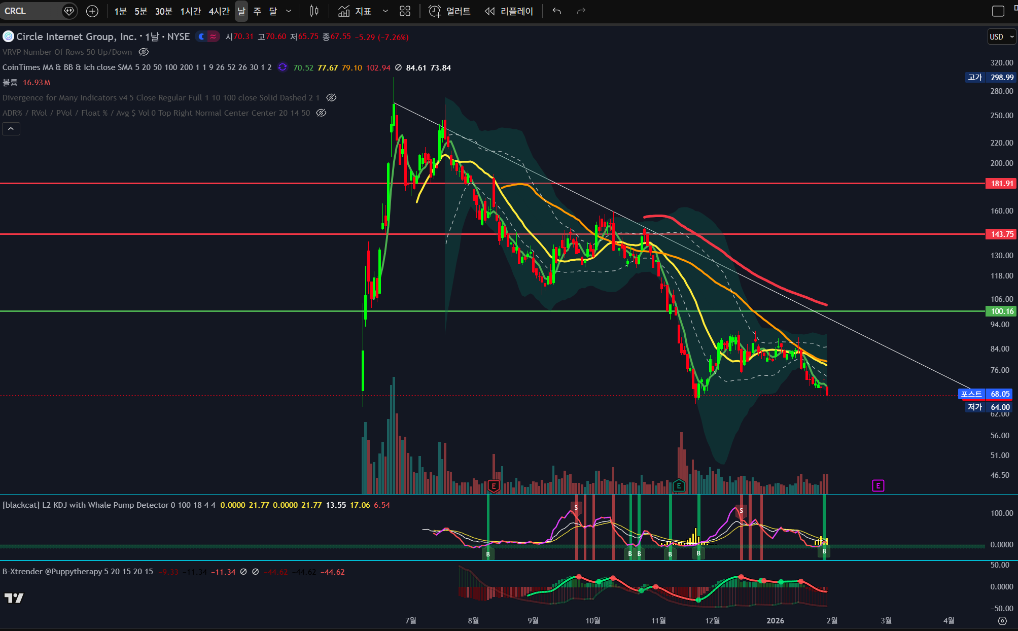 어제 미장은 되돌림 많이 했지만 크립토 쪽은 회복 못하고 엄청난 하락 중.