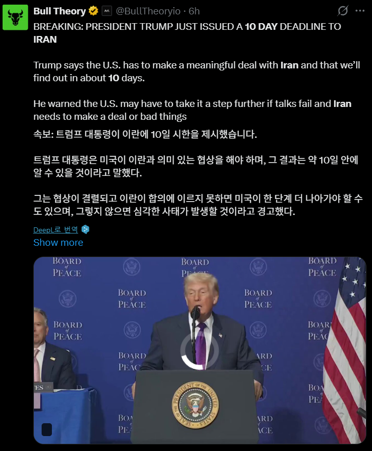 오늘 도람프가 10일을 제시했네요.