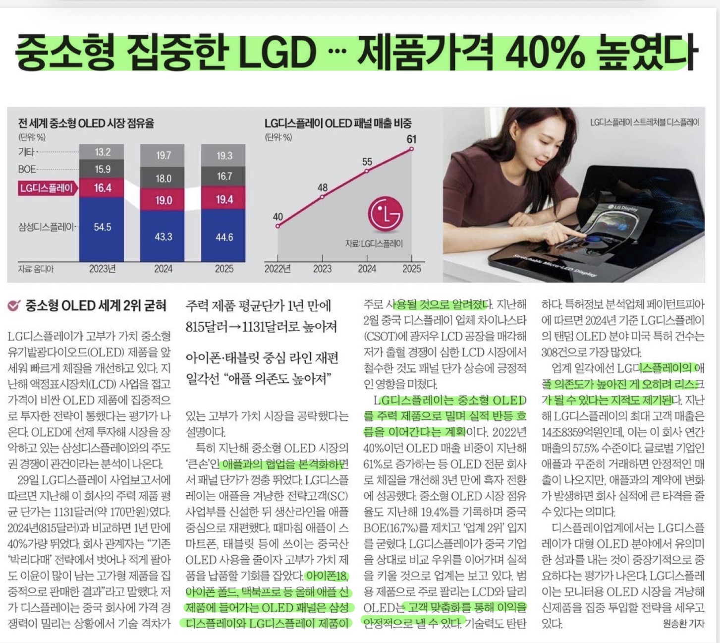 반도체로 치자면 OLED는 파운드리 같은건가; 고객사를 다변화할 수 있다면 좋겠네..