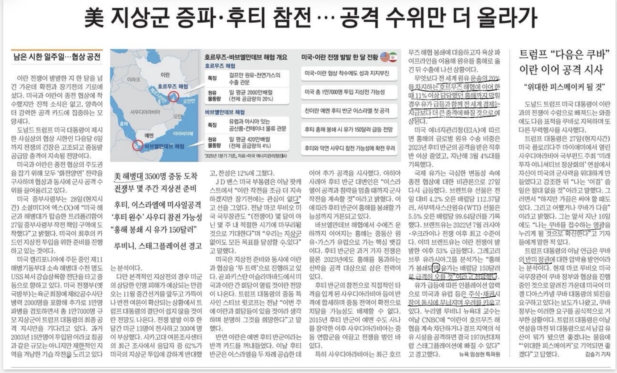 지상군 파견하면... 석유가 150불 갈거라는데.. 이란은 자기가 꺼낼 수 있는 카드를 최대한 활용하려는 것 같고, 트럼프가 정신차리고 빠져나와야 할텐데... 지상군 파견하면 뭐.. ㅋㅋㅋ 갈때까지 가자는 거겠지. 이번에는 트럼프한테 안좋은 말 한적 있는 인사들은 모두 거르고 뽑았다더니만.. 주변에 바르고 쓴 소리 해줄 사람이 없는건가