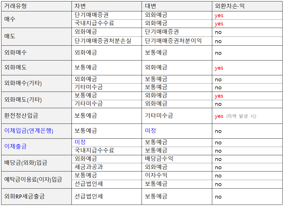 이번에는 거래유형 별 계정 분개를 기반으로 환전과 관련된