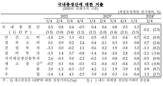 한국 2분기 GDP -0.2%(q-q), 2.3%(y-y)