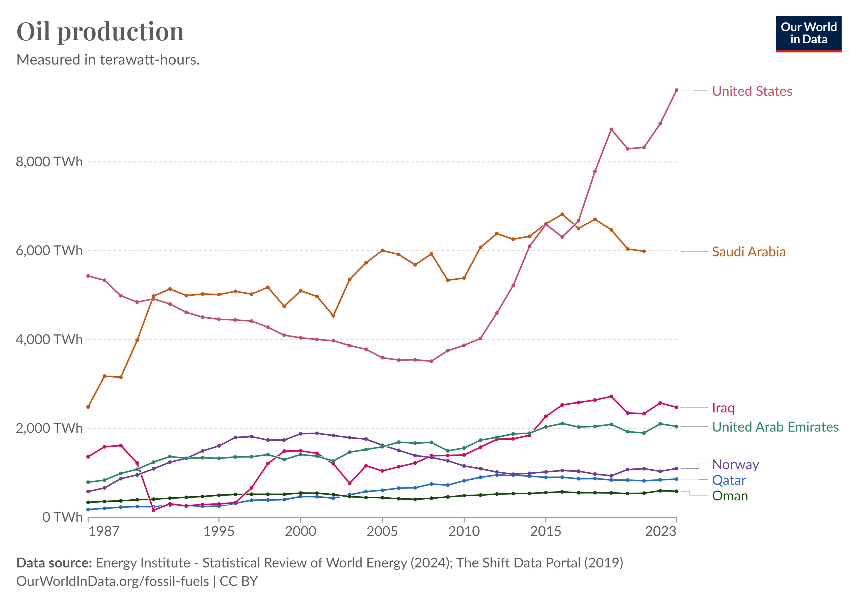 출처 : https://ourworldindata.org/grapher/oil-production-by-country?time=1987..latest