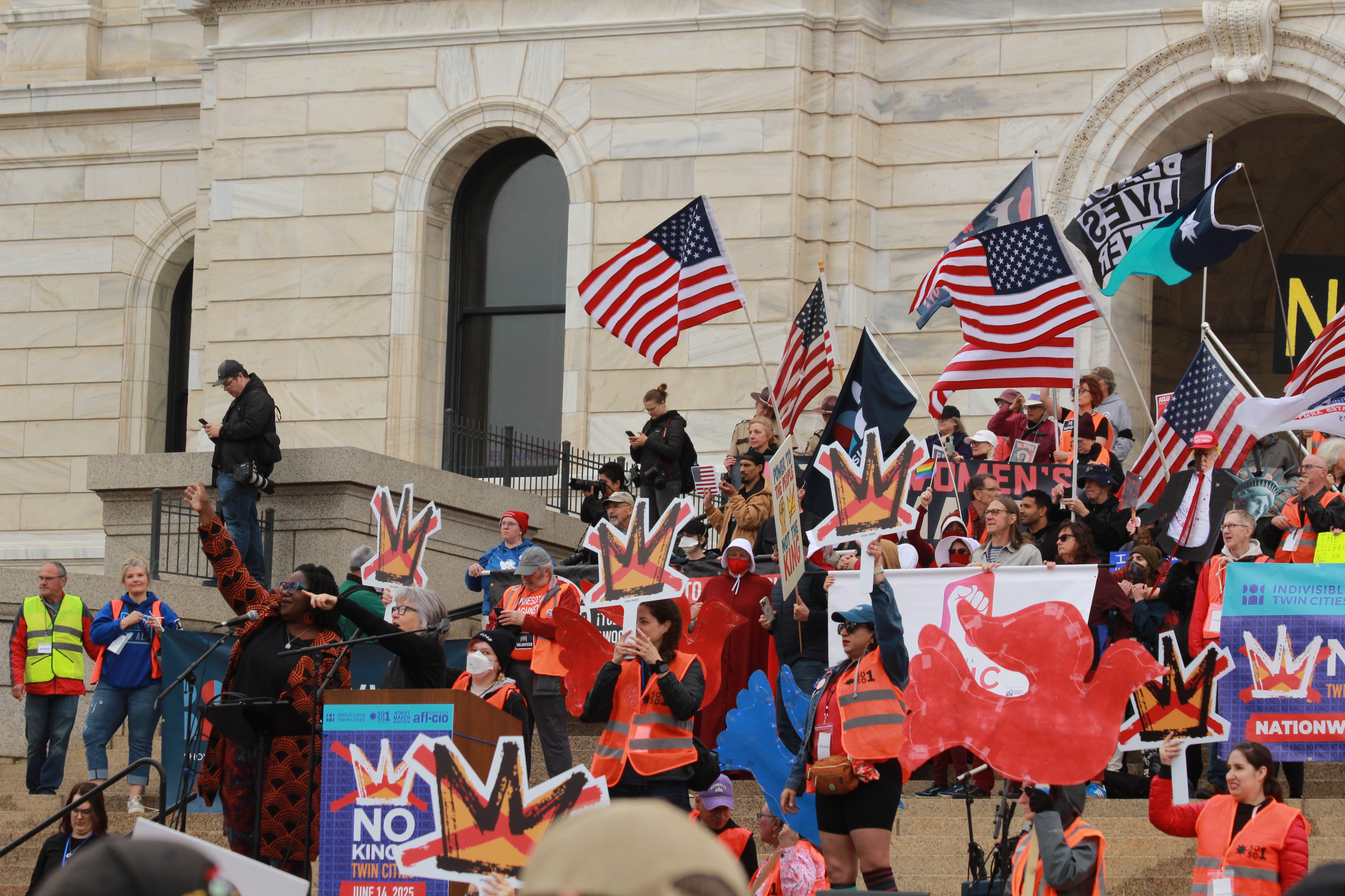 2025년 6월 14일, 미네소타 주 의사당 앞 'No Kings' 집회. 트럼프의 선형 압박 곡선은 유가만이 아니다.