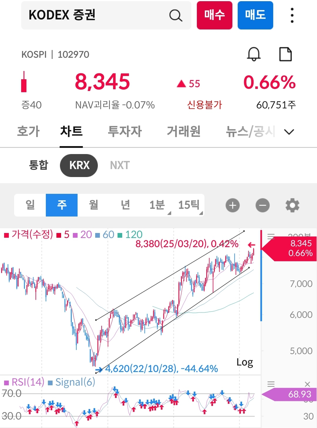 올해 엄청 좋은 방어주 역할을 했던 증권주가 중단기 과열 가능성이 있어 공유합니다.
