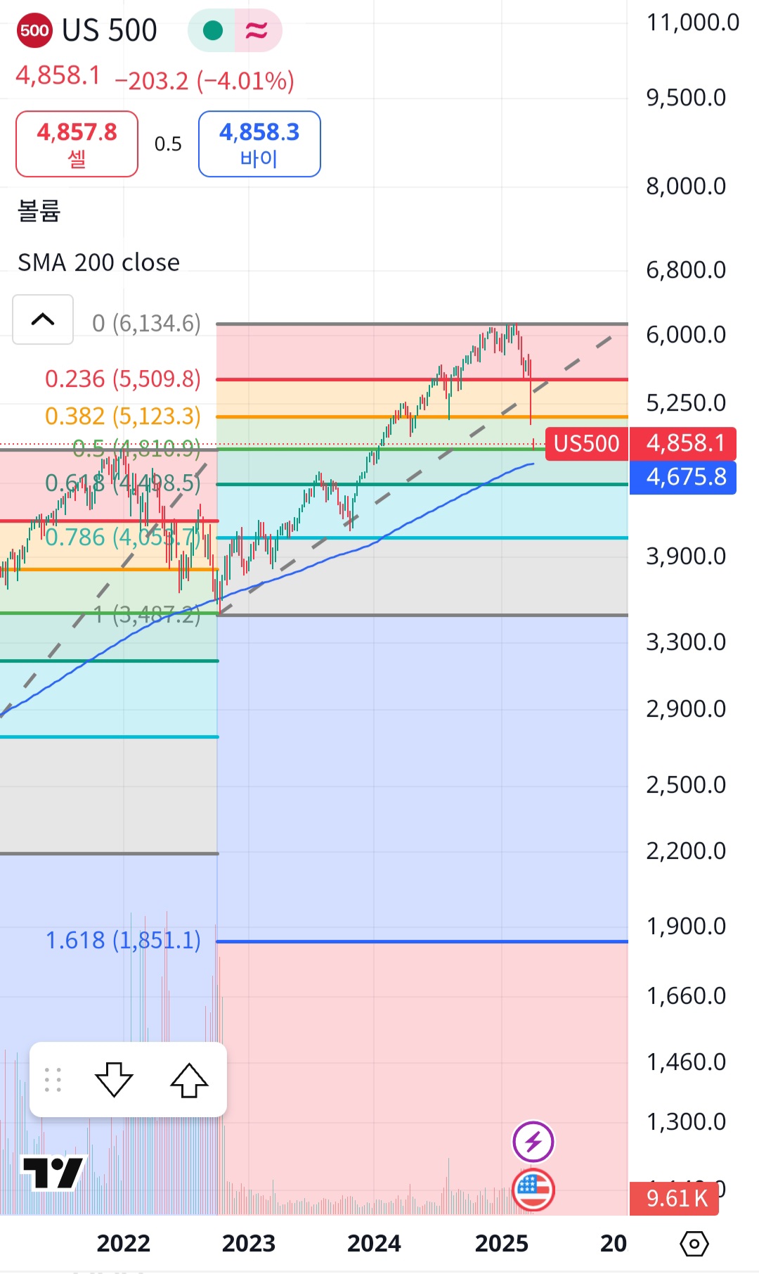22년 10월 하락은 코로나부터 21년 고점 형성 이후 나와주었던 하락이었습니다.그 피날레는 상승의 절반 반납으로 마무리되었죠.오늘 거의 그 부근에 도착했습니다.이번엔 다를까요?회원가입만 해도이 글을 무료로 읽을 수 있어요.회원가입이미 계정이 있으신가요?로그인하기1