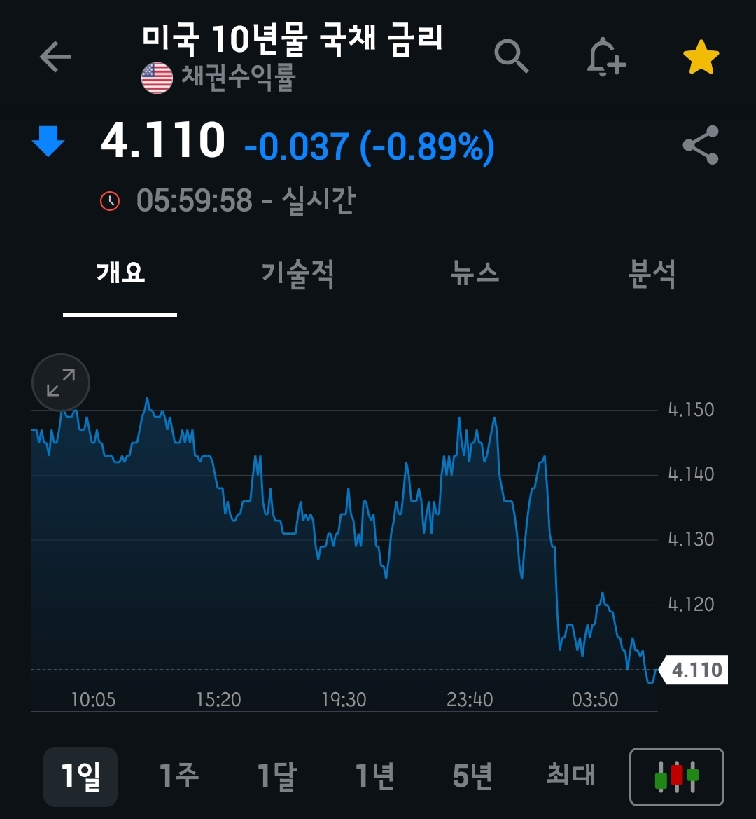 채권금리는 관세에 대해 살짝은 한발 물러선 파월의 태도에 하락을 보였습니다.