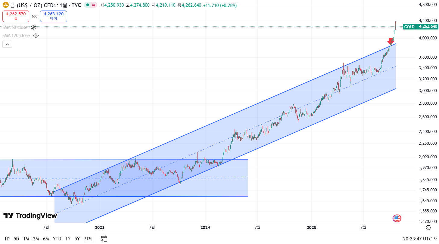 잠깐 사족으로 당시 제가 썼던 금보다 암호화폐를 매수할때가 아닌가의 근거 중 2번인 금의 상승 추세가 추세 상단에 위치해있다의 근거도 빈약한 근거였던 것으로 보아야 합니다.