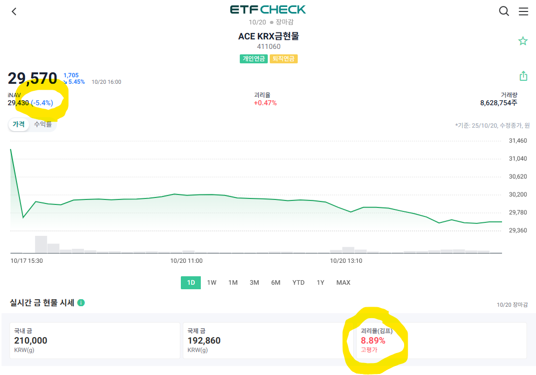 해당 글 이후 금치프리미엄은 (금현물의 한국거래소와 국제 거래소 간 괴리율 프리미엄) 지난 15일 최고치 20%부근을 기록한 뒤 하락하여 오늘 8프로까지 내려왔습니다.
