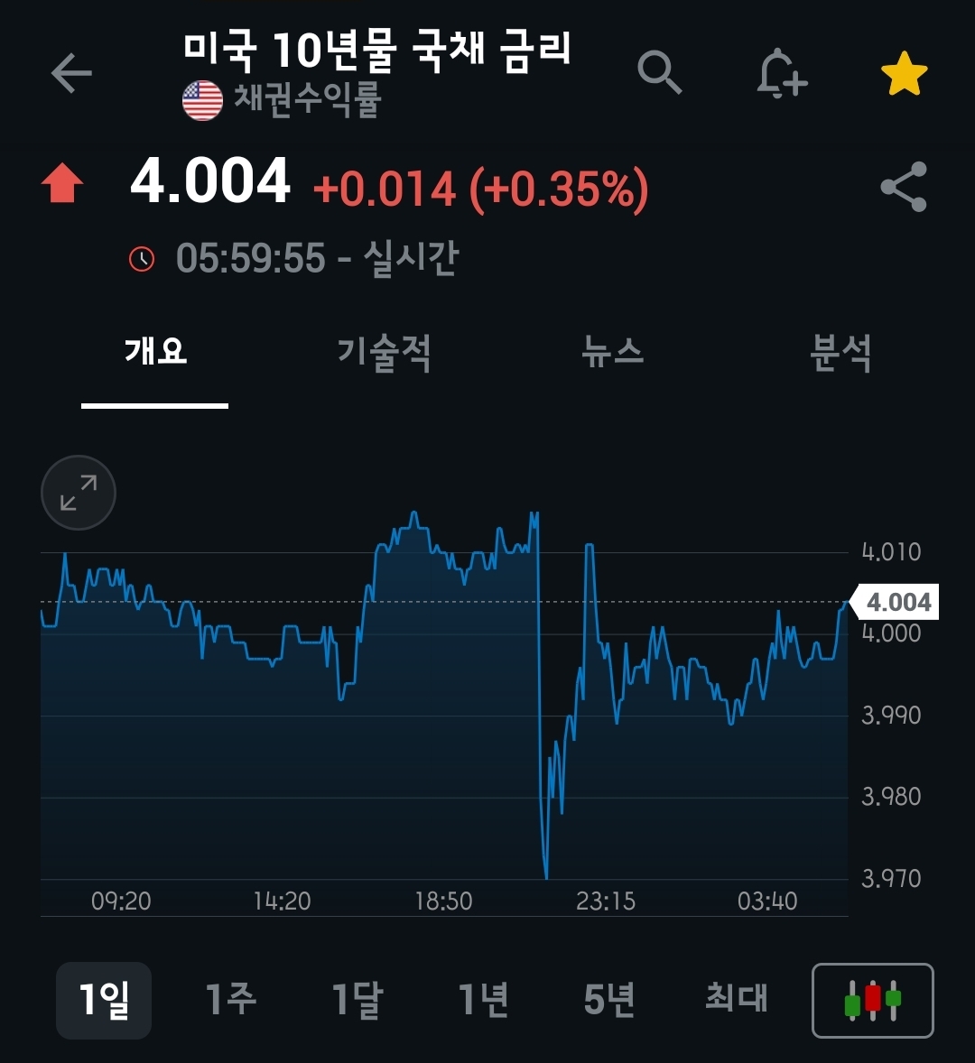낮은 물가가 발표되며 증시 전체에 랠리가 나왔습니다. 반면 채권금리는 4.0 부근에서 별다른 움직임이 없었습니다.