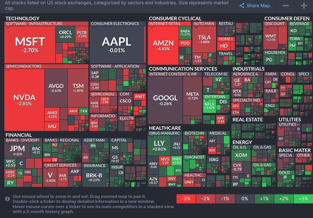기술주 위주의 하락세가 지속되었습니다. 장중 낙폭을 조금은 줄이다가 다시 하락하며 마무리되었습니다. (수정추가) 마이크로소프트와 앤트로픽의 계약이 순환출자구조라는 ai 버블에 대한 우려를 낳았습니다. 다만 장중 구글이 Gemini 3.0 출시로 장중 반등에 힘을 주었습니다. 메타의 반독점 승소도 영향을 주었습니다.