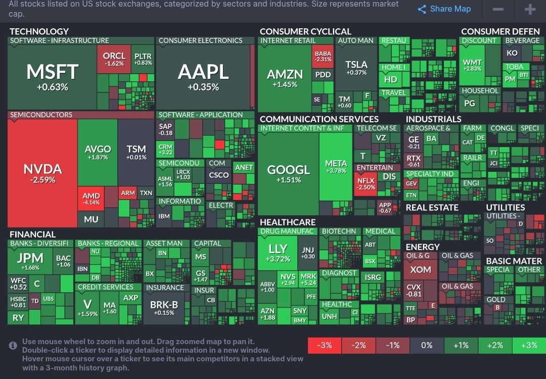 반면 테크주 내에서는 제미나이3의 아웃퍼폼으로 Tpu 사용 강세가 점쳐지며, 엔비디아 amd가 크기 하락하였습니다.