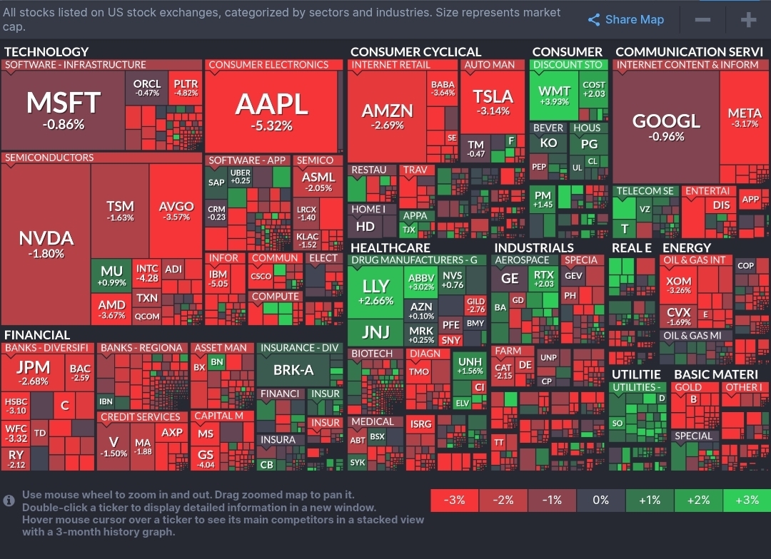 특히 금융주와 빅테크들, 그리고 마지막으로는 반도체 전반에 하락세를 일으켰습니다.