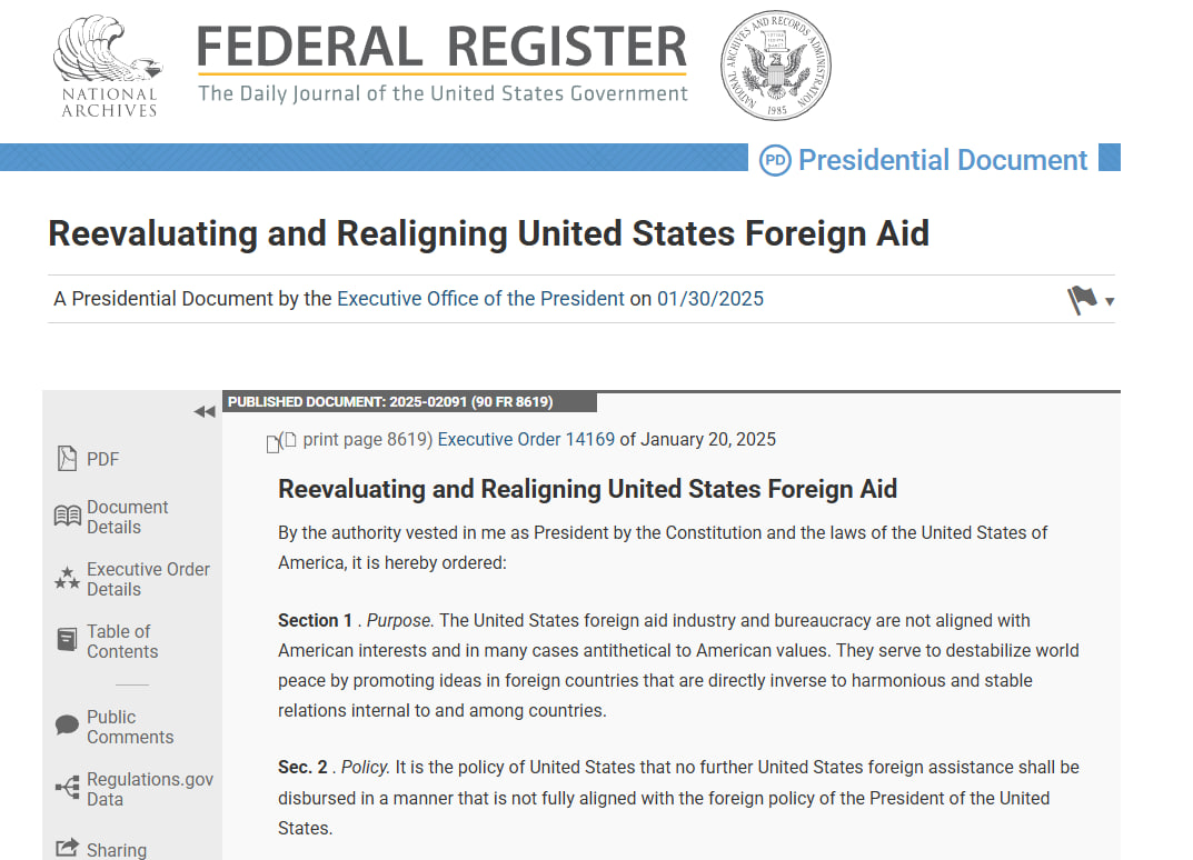 7️⃣백악관 예산국OMB에 따르면, 행정명령 14169번에 의거하여 대출-금융지원 프로그램과 외국 원조, 비정부 기구를 포함한 모든 재정지원 활동을 90일간 전면 중단.