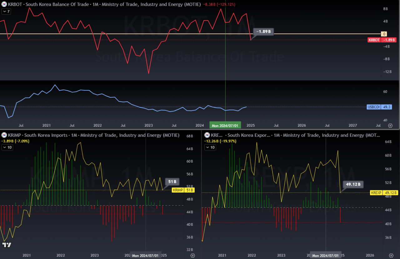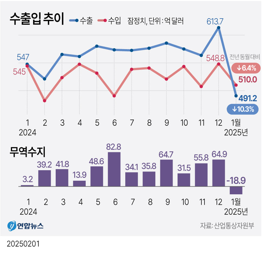 ๐ฐ๐ทํ๊ตญ 1์ ๋ฌด์ญ์์ง๋ ๐-18.9์ต ๋ฌ๋ฌ ์ ์