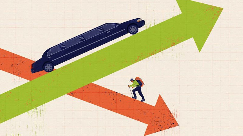 알파벳 K 모양의 위쪽 팔 모양에는 기존에 이미 부를 많이 쌓아둔 고소득층(자산을 이미 보유한 부유층, 빅테크, 월스트리트)이 있다.