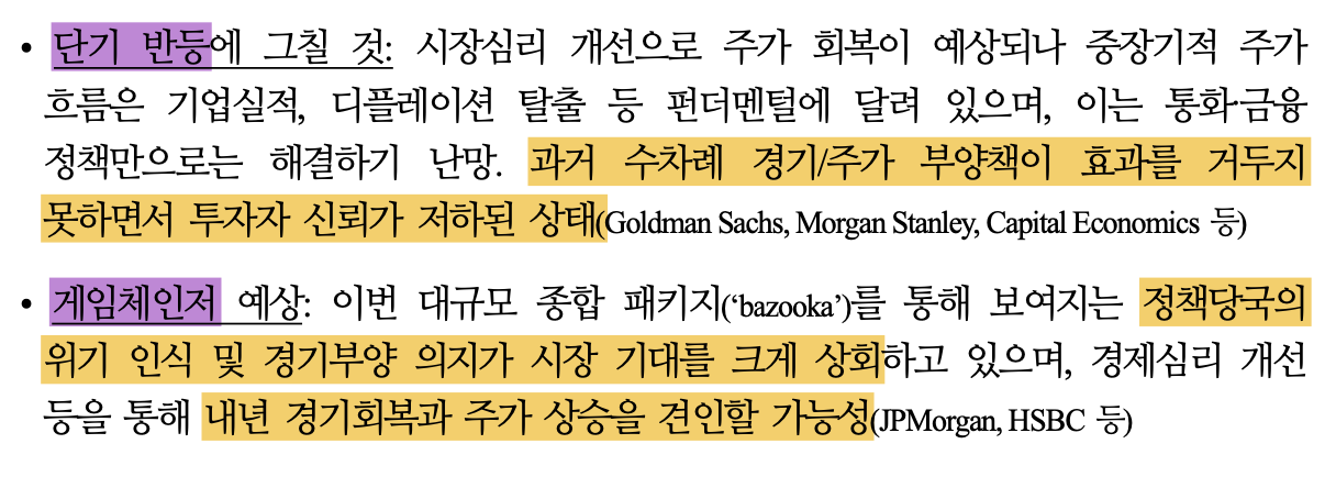 금융정책 수장들도 나서서 통화정책 완화, 금융지원, 주식시장 부양책을 사용한 것을 알 수 있음.