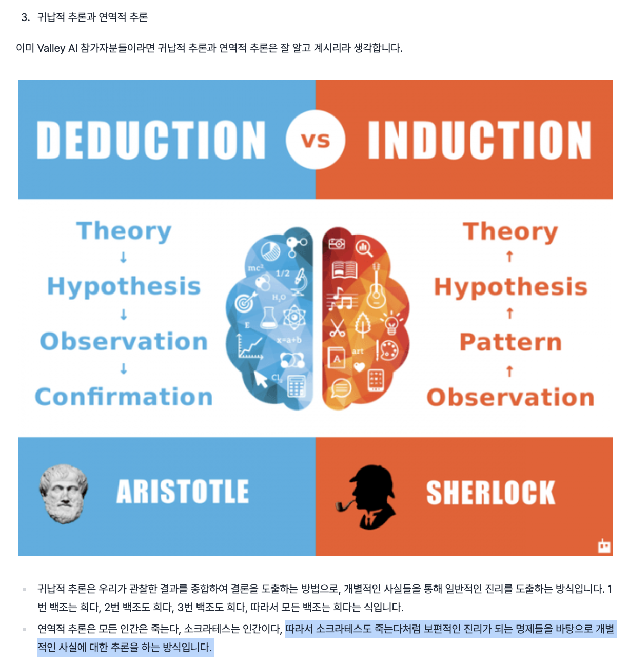 개별 사실들을 합쳐서 진리를 도출해내보는게 귀납적 추론.