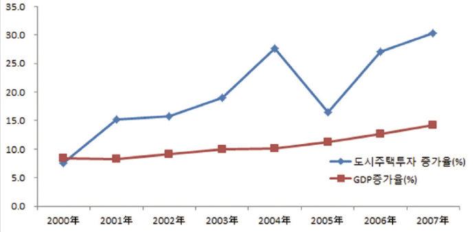 외국인 직접 투자 그래프만 봐도 2001년도 이후로 전체적으로 우상향을 한 것을 볼 수 있음. 외국 기업들이 공장 부지를 찾기 위해 밀려오면서 토지 거래 가격도 엄청 뛰게 만드는 원인 중 하나였음. 게다가 시세차익 + 환차익을 얻을 수 있을 거라는 소문까지 나면서 외국인들의 중국 투자 열풍도 생기게 됨.