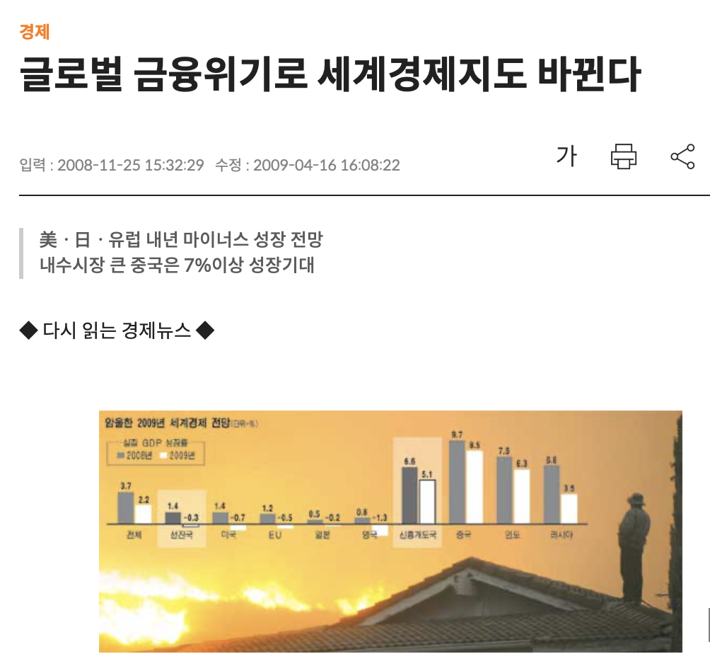 그렇게 2008년이 다가옴. 잘 알다시피 전세계는 위기에 빠짐.