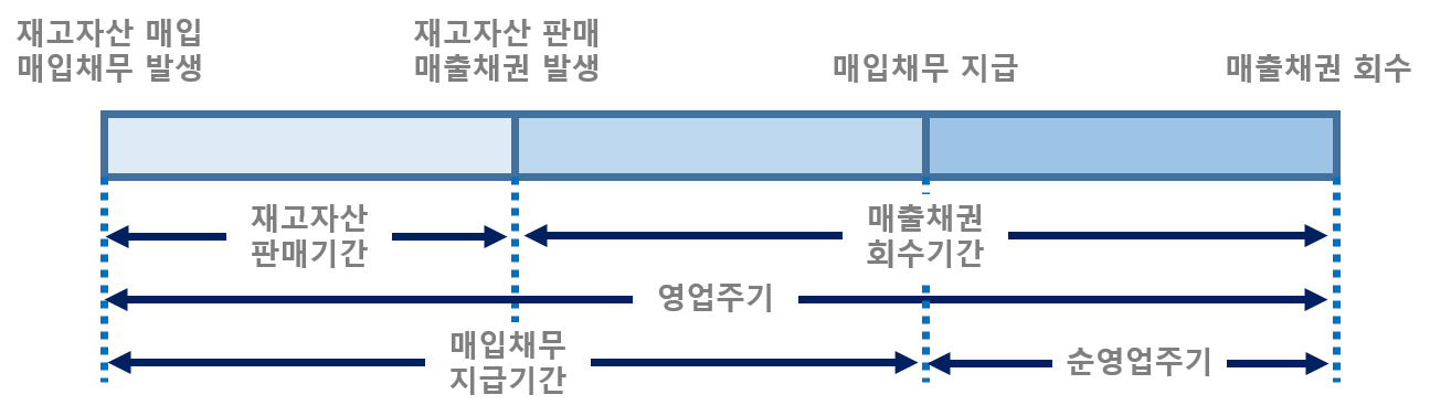 • 투자 (공장건물, 설비) > 매출발생 (제조, 판매 등의 영업활동) > 이익발생
