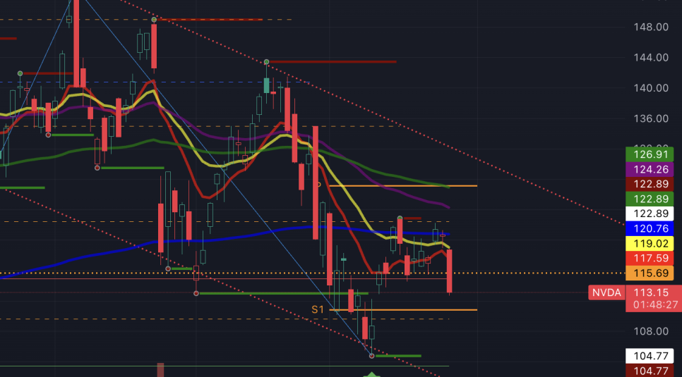 엔비는 레버리지 배율이 낮아서 숏 유지. 얘는 더 빠질 각도 보임. 하락추세에서 점점 각이 쎄지고 있는 중.
