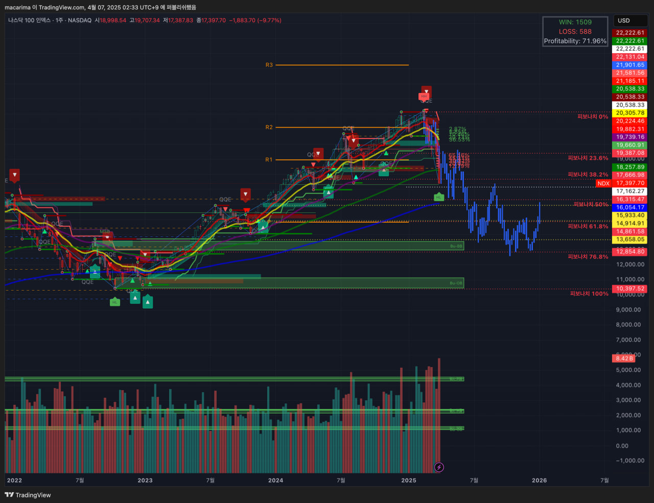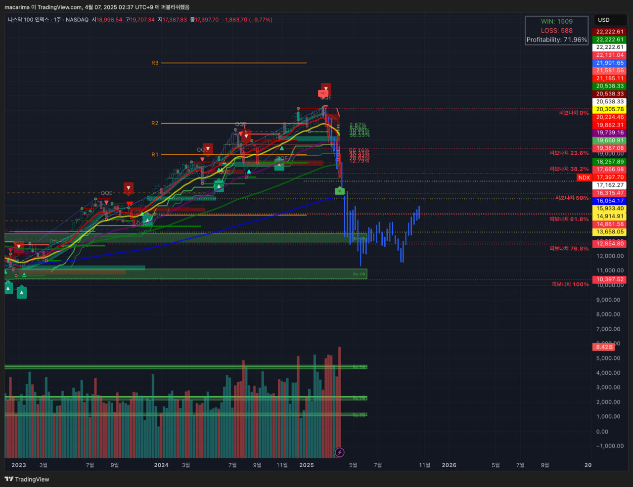 피보나치로 보면 나스닥100은 38.2% 구간은 돌파.